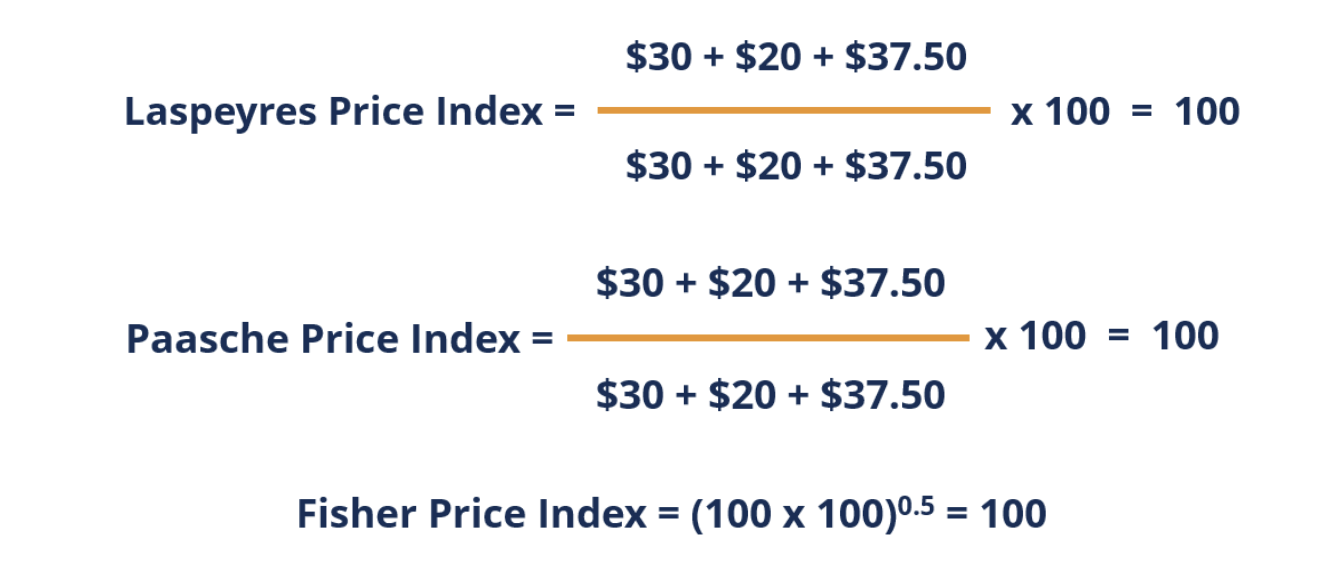 - \(\sum P_{it} Q_{i0} = (2.5 \times 10) + (6 \times 5) = 25 + 30 = 55\)