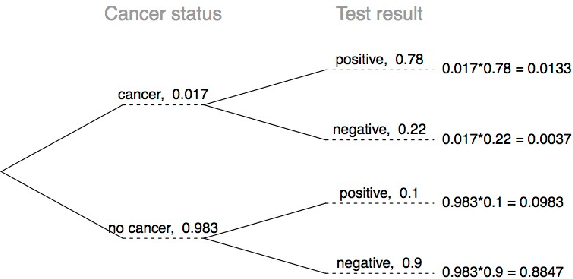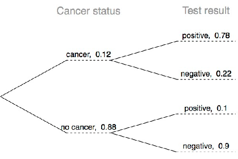 Nota: Los diagramas de árbol son útiles para invertir probabilidades: se nos da \(P(+|C)\) y se nos pide \(P(C|+)\).